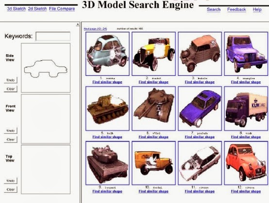 Scientists at the Purdue Research and Education Center for Information Systems in Engineering, led by Professor Karthik Ramani, created a 3D shape search technology called 3DESS (3D Engineering Search System; http:// tools.ecn.purdue.edu/~cise/dess.html).The engine is designed primarily to find computer-designed industrial parts.